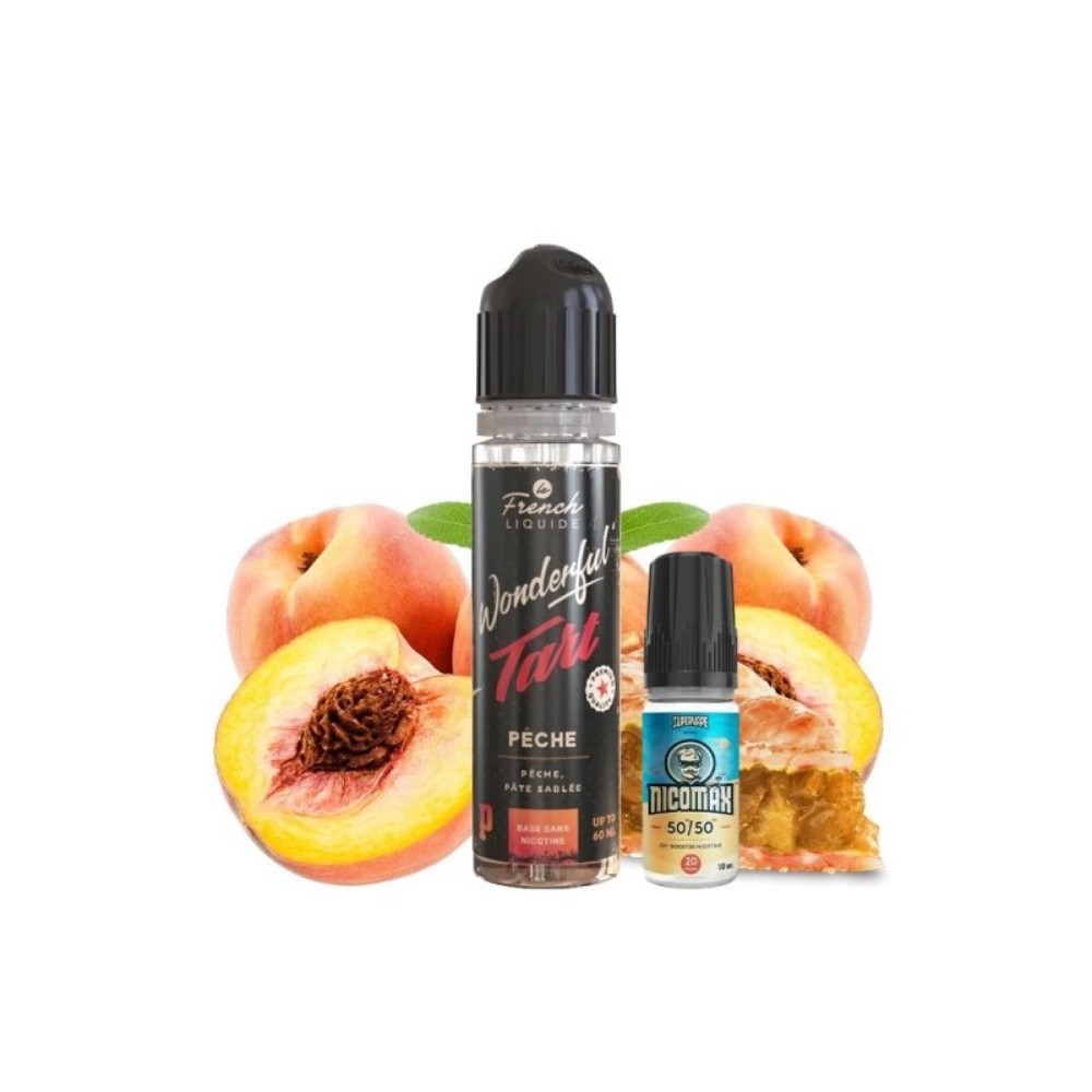 Pêche - Wonderful Tart est une recette chaleureuse et gourmande à souhait. Sa base fruitée-pâtissière équilibrée ravira les vapoteurs en quête d’un dessert subtil et savoureux. Le pack avec booster inclus vous permet une vape personnalisée et immédiate.